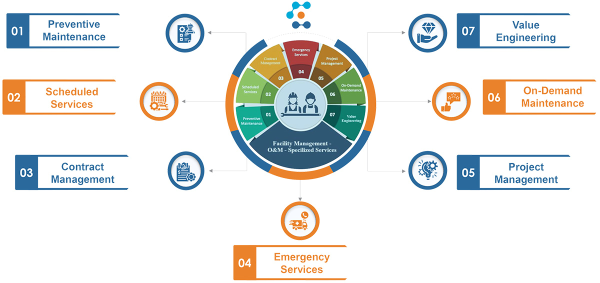 Our Servicesfadi2024-11-23T21:25:39+03:00 Facility Management O&M – Specialized ServicesPreventive MaintenanceScheduled ServicesContract ManagementEmergency ServicesProject ManagementOn-Demand MaintenanceValue Engineering